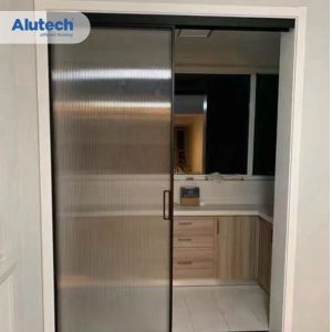 - Cánh cửa: Sử dụng kính dán an toàn, gắn với hệ thống bánh xe trượt trên đường ray.